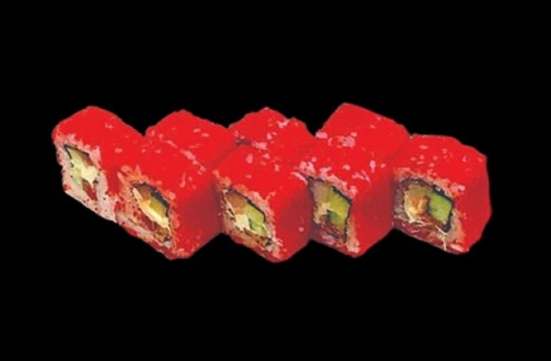 Креветка тигровая, копченый лосось, икра тобико, авокадо, огурец, сыр филадельфия, рис, нори
