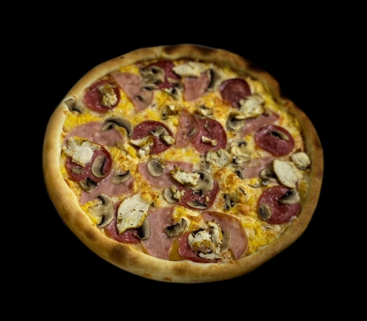 ветчина, салями, филе индейки, свежие шампиньоны, неаполитанский соус, гауда,