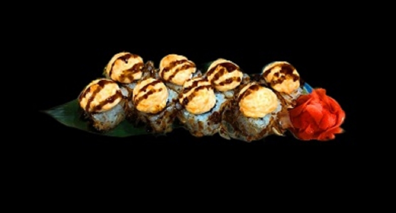 Угорь, сыр Филадельфия, авокадо, огурец, стружка тунца соус Унаги, соус Чиз, рис, нори